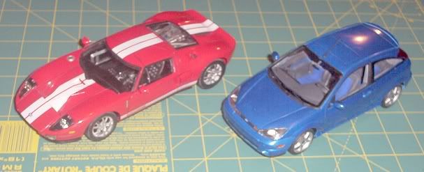 Yadda yadda yadda....Polar lights Ford GT in red. Blue to follow later on. This kit was a great build. Very recomended...is that right? w.e..It's 4:15am, I promished I'd finish this tonight to zoom zoom, but, he finished his 1st.