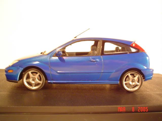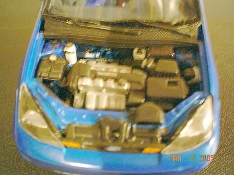 Stripped chrome, used testors metalizers aluminum buff on teh wheels. They were great all up untill i had to mount the tires..oh...I've never yelled at a model so much. The paint kept rubbing from the wheels to the tires. I was sanding the paint off, but that didn't work. Paint still all on the tires. So I just painted them flat black. I used the vinyl top spray technique on the interior. Why? I wanted to produce a nice textured look. This was achieved with multiple mist passes with the spray. I didn't notice the recomended paints in the instructions untill after I had finished...the instructions are just like 4 different blown up parts assemblies. Tiny also. Colors: Ford engine blue on the camcovers, silver on the interior accent parts, buffing aluminum on the wheels, gloss aluminum on the engine block, titanium on the exhaust..seemed ok at the time, you can't see it really anyway. Flat black on the interior, and engine misc. parts. Thanks ZoomZoom for getting me to actually finish a model in record time, and all the info adn such he has posted. Thanks man. ![]() ![]() Older cousin. ![]() Thanks, Frank X. |