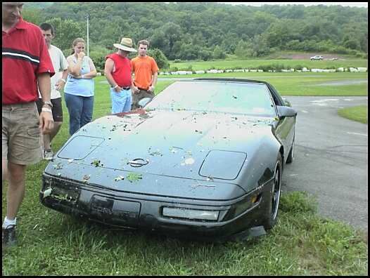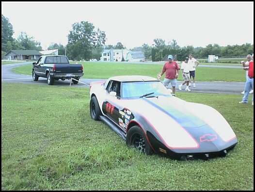 one guy went off the track, hit the gas instead of brake! ![]() then they pulled his car out with a truck ![]() Guy let his wife drive the car, look where she put it! ![]() and i burnt my leg on my 78 corvette's side pipes... |