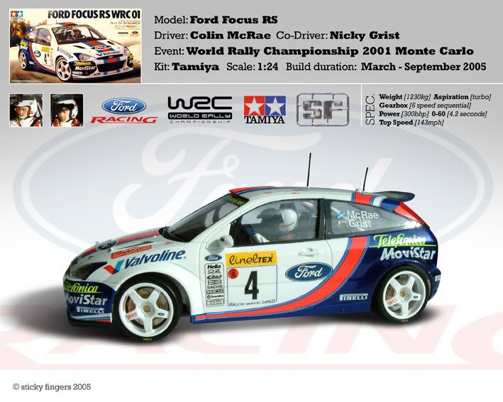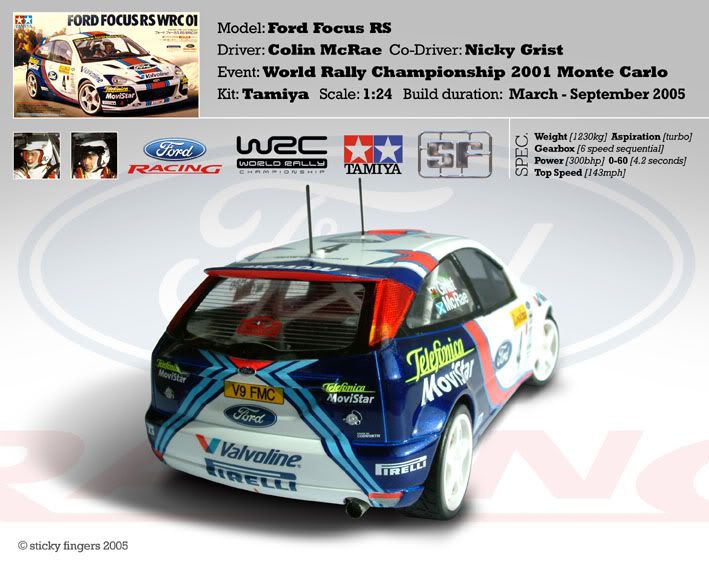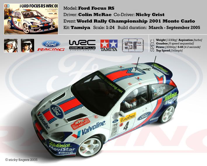 Well, I couldn't wait for Scotland's crappy weather to change. Still waiting on sunshine & dry weather I decided to sit the car beside the patio doors & get as decent shots I could muster. They came out okay I the end I think. I also tarted up the presentation because I'm going to print these out to create my own completed thread I can keep in a photo album. Okay then, since my last progress I have obviously connected body and chassis together, applied p/e/ emblems & p/e hood pins. I had ever-so-slight fitting problems with chassis & body but nothing to panic over, although I snapped off one of the aerials in the process. Carefully, I glued the aerial back on, while inside I was raging at such a last minute mistake! Right, enough of the blah, blah and on with the pics. Hope you like them ![]() ![]() ![]() ![]() ![]() ![]() ![]() ![]() So, finally after all these months my Focus can rest! Next up, the Renault 5 Turbo for the eighties contest. |