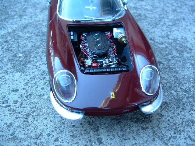 Kit is painted Tamiya Maroon, BMF work on the trim, Alcad Chrome on the bumpers, and very basic engine wiring. I did use some photoetched parts on the engine but you cant tell in the pix. Rather frustrating kit to build - I started out painting it with Finishers Pure Red, but didn't like and ended with Maroon which suited the car ok. The windscreen frame was very fragile and kept breaking! Anyways, here come the pix... ![]() ![]() ![]()