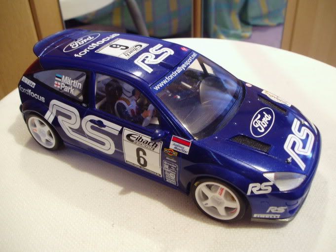 The orange that I used on the Repsol Escort was flourescent safety paint out of an aerosol, I just sprayed the paint into an old jam jar then after it had settled for a couple of hours I put it in a small jar and sprayed it with my airbrush, the only thing with this sort of paint that I used it has a very high build quantity to it, so spray light coats if you use it. Another sort of paint you could try is Pactra paints, they are usually used for radio-control cars, I know it's supposed to be for Lexan bodies but it can be painted on "normal" plastic bodies, just use a good plastic primer first. Yes you could use fishing line for aerials but I'm not into fishing