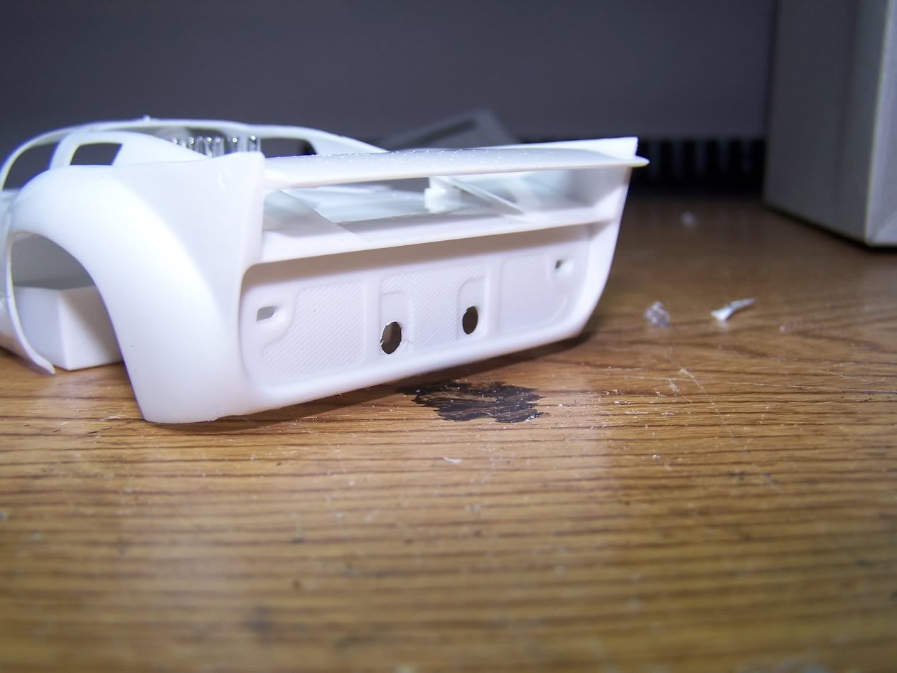 Hello all, its been a while since I've posted, I've stuck in a dorm room in Clemson, SC. I home for Christmas and I decided it's high time I build a model. I'll be keeping this relatively simple, because I only have 3 weeks to finish it. So far I've rid the body of mold lines, and sanded it down with 600 grit, still needs some 800 and 1500 wetsanding before I can lay the paint down though. I also drilled out the exhaust openings so that I could use aluminum tubing. What is the prefered method for cutting aluminum tubing cleanly by the way?