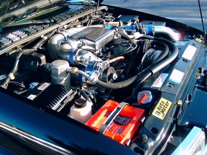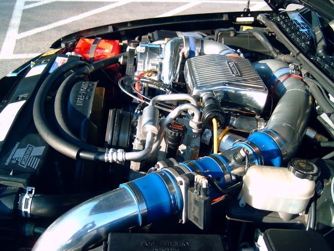 Silverstar headlight bulbs. Clear tailights Clear turnsignal covers front (hard to find with factory fog lights) Billet grill 18" polished wheels T/A Z rated tires Superlift oil filled with nitrogen shocks All rubber is replaced with polyurethane (suspension) red. Also includes exhaust mounts. 3" catback exhaust. Ceramic coated headers. Drilled and slotted brake rotors. Oversized trans pan with flow through cooling tubes. Cool air intake. Throttle body mod. Vortech supercharger. 1.6 roller tip rockers. Crane Is6 ignition (hidden in center arm rest). Manual retard Knob. Hypertec program for shift (Trans) Can not use performance tuning from programmer. Optima Battery. Steel Harmonic balancer (6.25). Steel cowl induction hood. Autometer D.P.I.C. performance gauge,vacumn boost gauge. FMU. Inline fuel pump (uses the one in the tank also). Forged lightweight pistons. White gauge covers. I know that I am missing a few things, I just can't remember what else I have done. |