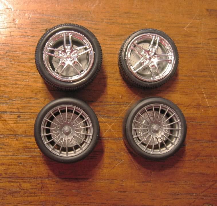 I was thinking a little bit of plagiarising never hurt anybody , so I d like to thank our spinning-wheels -specialist Robiturbo, who made a nice tutorial on a link. What I did do on it is just basically paint it; polish, but I need to polish it a bit further in detail, then wax it. Nothing much is to be said on this model, except it's a trial-model for those wheel thingies, and will come up hanging on my wall as some sort of display artsy piece, on a piece of wood faded to look like a racetrack (again, plagiarising to the extreme, beotch! ) Nothing too special on this kit, besides the rimses and stuff. ![]() rimses prototypes. (will get detail later) ![]() rimses on the car. ![]() little detail for the rimses now. That's it, comments are as always welcome! big thanks to stijnbamps1, who helped me with the thinking and the swearing on this kit too! hehe Oli |