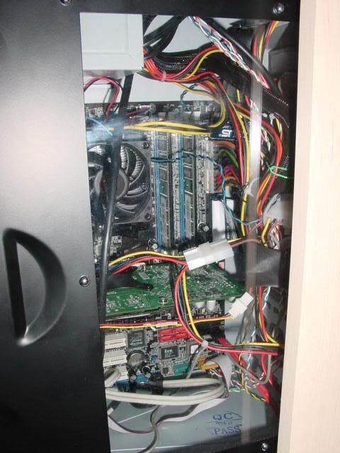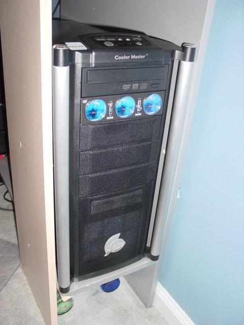 ![]() My Fan controller, left to right: Voltage gauge to front 120mm fan; left swtich is to control fan speed; sound pressure gauge; and CPU temperature gauge ![]() The Internals ![]() ![]() After earning some good grades, my dad finally said yes. I know I've always had some addictions to the computer (games etc), and not so good grades also led to the answer "no." But putting that all back, my dad finally said yes. so im sooo happy. My friend custom designed it, then we ordered the parts and my friend assembled it. FOr those who want to know what it's made of: Chassis: CoolerMaster Centurion 532 aluminum Mid-Tower ATX case, came with a 430 watt power supply unit Motherboard: ASUS A8N-SLI deluxe ATX motherboard CPU (the best part): AMD64 4000+ Athlon (MAD FAST) RAM: dual channel mushkin 2 gig of ram HD: Western Digital Raptor SATA 120 GB 7200RPM and a secondary Western Digital IDE 120 GB GPU (the other best part): eVGA GeForce 6800GS 256MB SLi Ready PCI Express 16x, I'm saving up for another so I can run an SLi (system where it can run two videocards as one unit) so I can have 512 MB of video memory Here's my video card (the one on the left) next to my other video card that was bought after market and was in my other PC ![]() This thing is mad fast, so fast I don't even see the Windows load screen pop up on startup, and everything is click on demand. It's amazing lol.