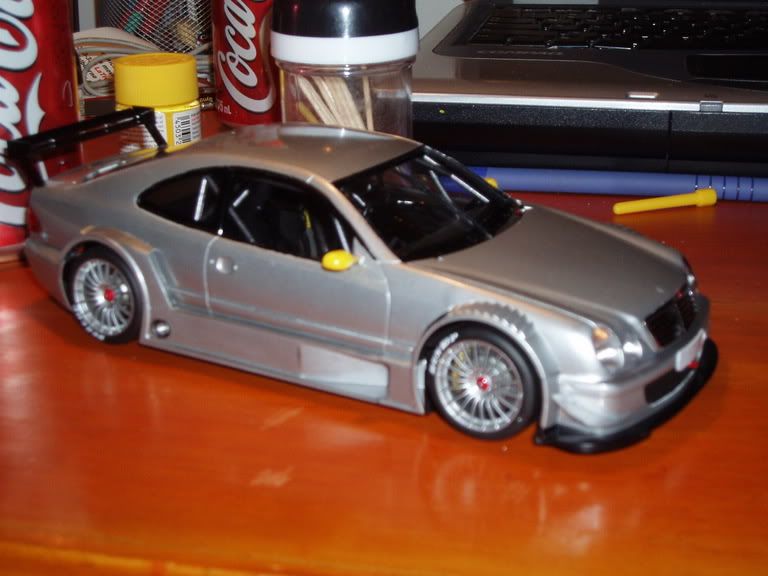 The mirrors are painted on the DTM with tamiya acrylic, but on the GTR it is tamiya spray chrome yellow. if you do a few coats on a smooth surface the acrylic can give a great finish. - Mitch and Rob I found the CLK DTM to be great - decals are time consuming but worth it in the end. It would have been nice to have opening doors like they did with the astra's, but oh well - Rob Storey |