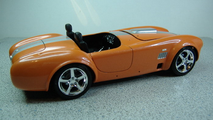 ![]() I stole the wheels and tires from the Saleen mustang Speedster kit I have started. ( mty Co-worker is replacing the kit, buying me lunch, AND paying me to build this!!) The car was painted with Basecoat Home depot orange and overcoated with pearl, then clear. The stripes are also painted. ![]() ![]() I also stole the seats from the saleen speedster for the black flocked interior. The car I am replicating has miata seats!!I also added lap belts from black craft ribbon and PE buckles from Detailmaster. ![]() ![]() The side pipes were stripped of chrome, assembled and seams sanded away. They were then alcladded chrome. ![]() Fram and engine were also assembled. The only detail added to the engine is plug wires. ![]() ![]() I should be wrapping this build up in a few days...... DaveT |