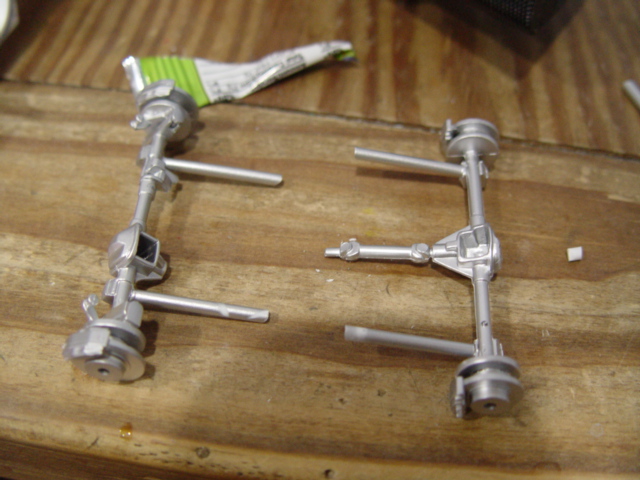 I bought this tamiya kit in taiwan couple years back. Just started on this car few days ago. I also picked up a set of aoshima mud tires at my LHS so i decided to install them. i cut the leaf springs off added 2 links to the axels.. i think im gonna be doing a 4 link setup.. i also added brake discs off a R32 and a R34 skyline. the old springs and shox were too short so i made some new ones. I also added a new exhaust system for a duel outlet. blah here the pics