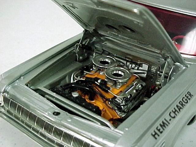 I really like these old mopars. Very clean work and nice engine bay. The hood hinges look excellent and very realistic.