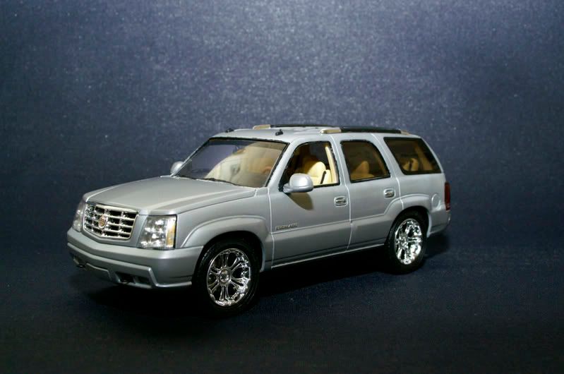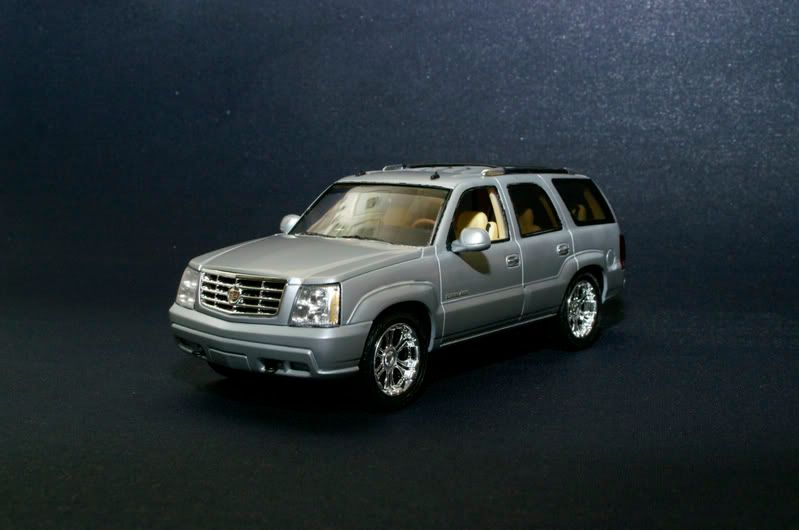 I don't have that much time or space to build right now between school and moving. But since I hade Friday off I thought I'd do a quick build. The only kit I had on the shelf that I could spare was the Revell Escalade. Not really my type of car but if was good for what I wanted. Started it at six in the afternoon on Thursday and was hoping the finish it before midnight Saterday. And I did and with five minutes to spare.