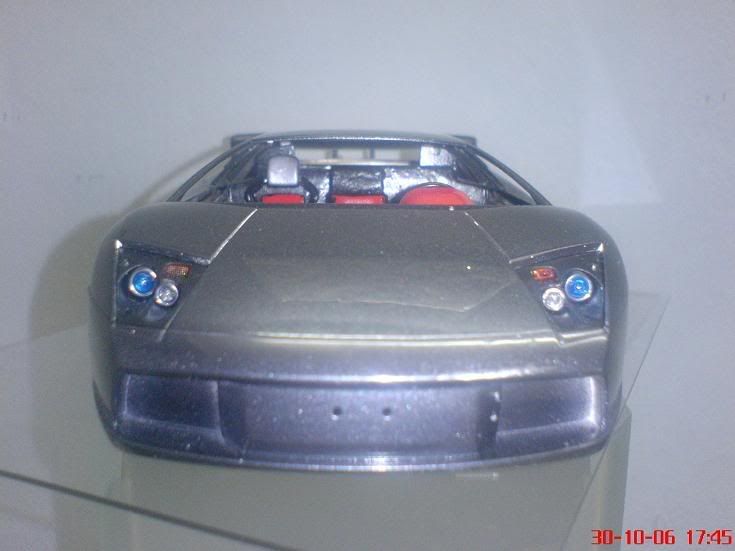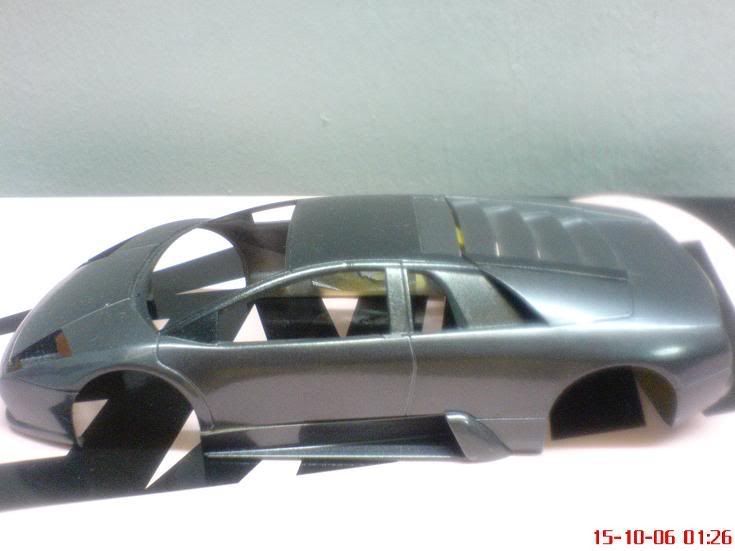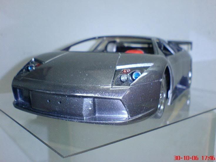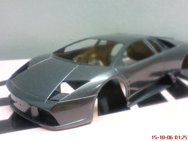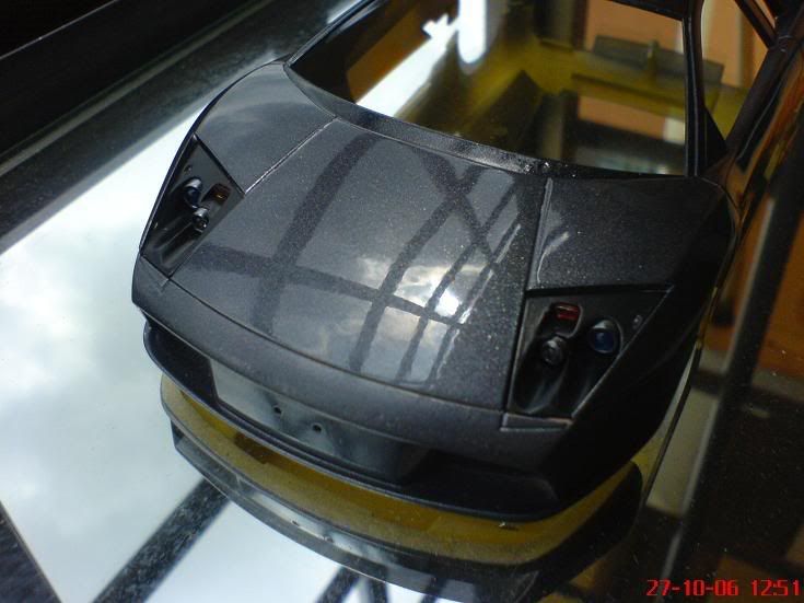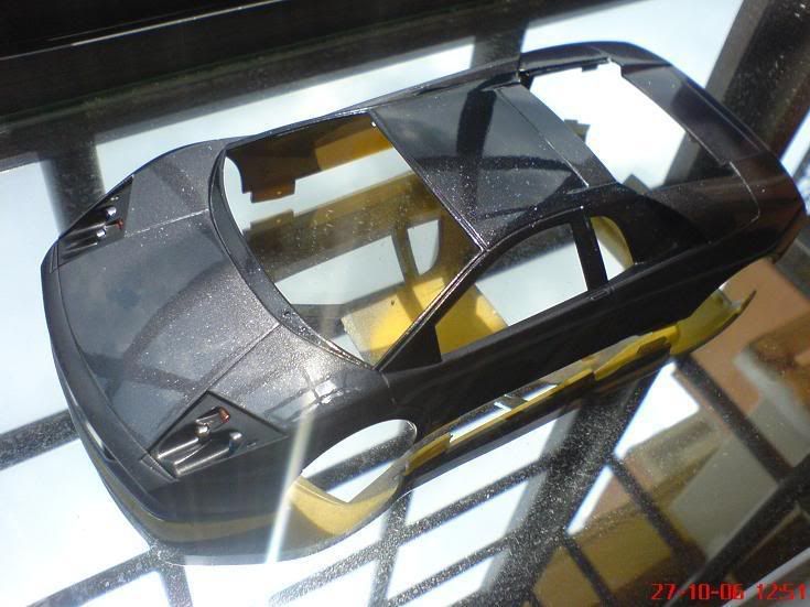 Body as stated is Pearl Gunmetal Pearl Black. Interior will be Black/Brillant Orange. Something like that colour scheme you see avalible on the new Gallardo spyder.Not much progress pictures as i couldnt have access to a good camera when i started. Will post progress on the interior and engine as it comes Body after paint and pearl coat + gloss coat ![]() ![]() ![]() Light Housing done ![]() ![]() Now this is the nice part.. The main body is polished up.. almost done still have to polish more. F/R bumper still in unpolished only sanded down. ![]() Darker pictures just to show the reflection ![]() ![]() Enjoy...