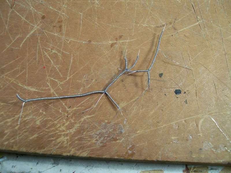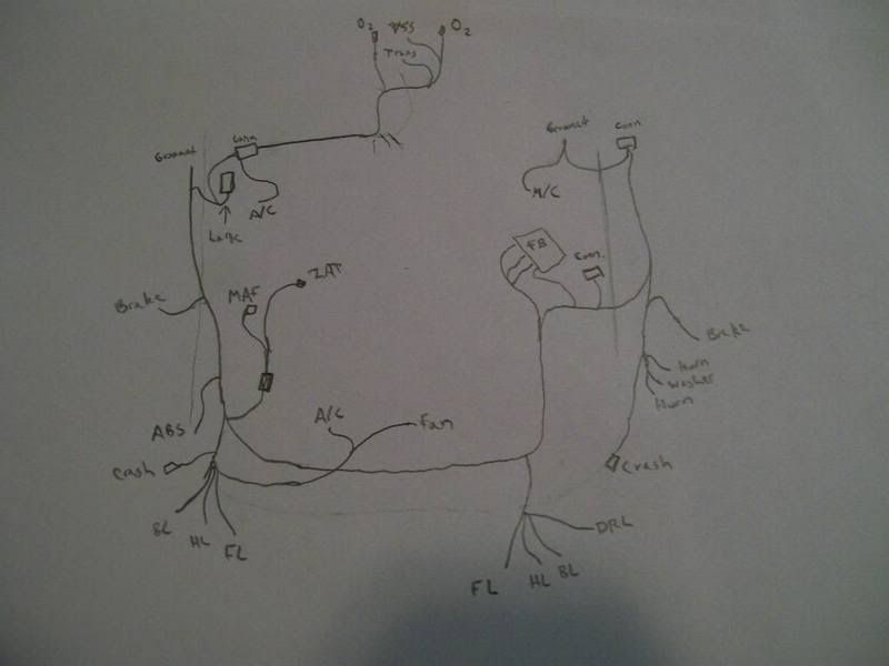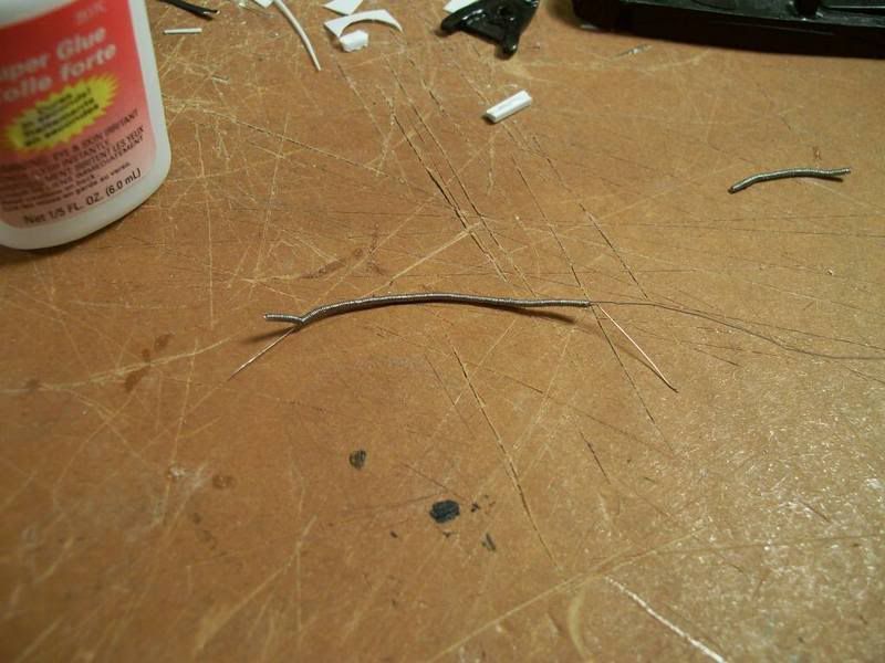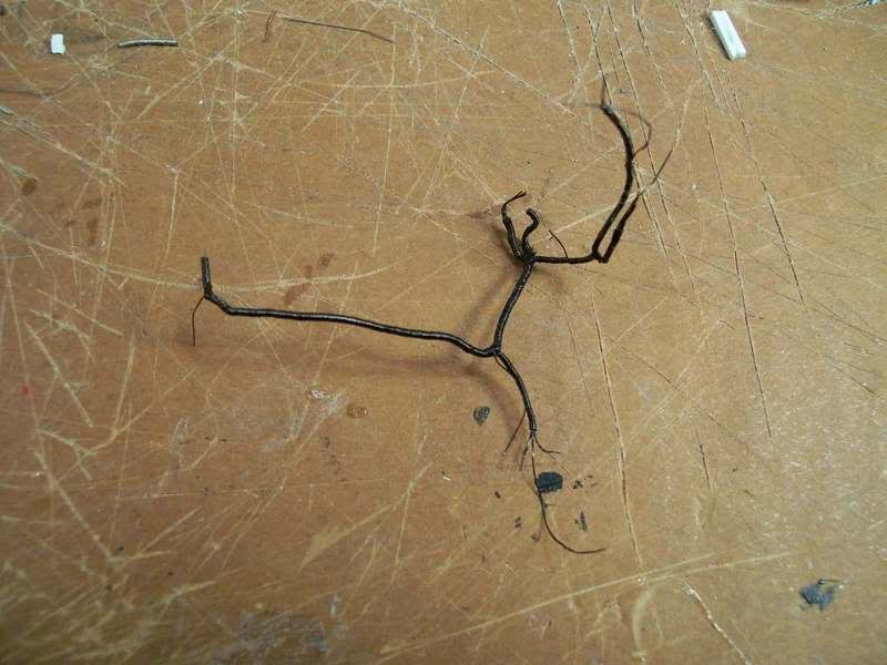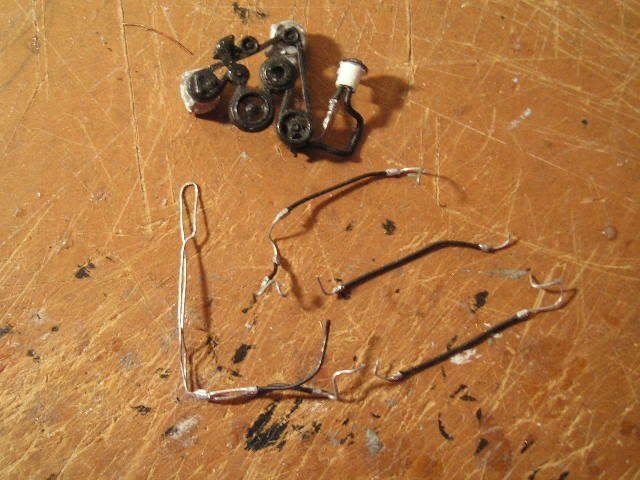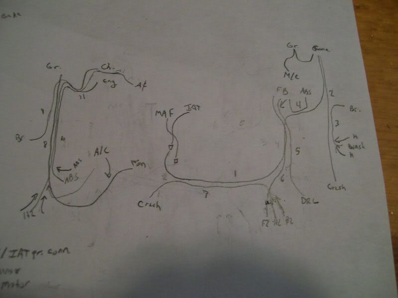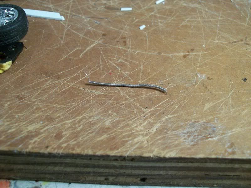 First up is the driver's side engine bay wiring harness. That's right, not only is there an engine harness and an engine bay harness, there are actually two engine bay harnesses. Using various reference shots, I was able to build a pretty accurate unit. Several people requested a tutorial of my wiring technique after seeing it on my Corvette Z06. I'm afraid this harness is much too complex for that, but the general idea is here; in addition, I've refined the technique down to the point where it's quite easy and actually fun (rather than a dreaded experience like my previous method). I call it the "all-wire wiring harness", and you'll see why in a bit. Here goes. First the diagram. This is always my first step, and is one of three diagrams I draw. It shows the layout of the harness and all the components that are connected. I use abbreviations, obviously. It's just a rough sketch, and this actually shows the driver's and passenger's side harnesses connected (I didn't realize they were separate until a little later. It's pretty much the same, though; just a separation and they're two harnesses). ![]() Next diagram: the looping chart. In my latest harness design (the one I'm showing you), there are fewer loops than before because I can easily insert wire stubs. That probably sounds like foreign nonsense to you, but I'll discuss it in a bit. This chart shows each wire that will be in the harness. I've numbered them, so I know how many wires to cut, and I've listed their starting and ending points. These wires form the core of the harness, and most of them also double as the visible wire ends that are attached to parts in the engine bay. I'll need 11 wires to form the core; the wires with arrows on the end will be stubs, and don't loop. Previously, when I used tape for my harnesses, stubs were a pain and I avoided them. But with my current method, they are no problem. ![]() Next, my final diagram: the 1:1 size chart. This shows exactly how big each part of the harness needs to be. When I'm cutting core wires and harness tubing, I lay them directly on this chart so that I cut them to the right length. ![]() Using charts 2 and 3, I cut the 11 core wires to the proper length. There are only seven in this harness; the 11 number is for the whole engine bay (both sides). Next, I begin making my harness tubing. This replicates the convulted tubing used on modern cars; for old muscle cars with taped harnesses, I use a thin strip of masking tape and wrap it directly around my core wires. In this method, I wrap .13mm wire (the same size I use for core wires) around a large piece of wire that is only used for making the tube. It's not part of the harness. The wire I'm wrapping around is .62mm; I use .44, .41, and .26 for my other sizes of tubing. ![]() This was all the tubing I could make from one strand of .13mm wire (it came from the mesh shielding inside a co-ax cable). The cable was a left-over from when we wired my house and shop, so it's pretty short, and the tube is not very long. However, this is absolutely not a problem. Another section of tubing can butt up against this one as I build the harness and you can't even see the joint. ![]() Here you can see my first core wire, with a short length of that .62mm tubing superglued on. Keep in mind that when drawing my diagrams, I never exceed four core wires per .62mm tube, becuase if you do the math, you can't fit any more in there. Never mind the principles of pi r squared, I just use linear measurements (wire diameters) because in this small scale, a tiny bend in the wire will nullify all those complex calculations. Four is all you can get in a .62mm tube (for core wires), period. You can probably get more stubs in just by cramming them in the very end and supergluing them fast, but try threading more than four core wires through and you'll find it can't be done. Of course, I look at the real wiring harness (or picture) to see how big it is in each section; .62mm is quite large, the size used in modern cars. Branches of this harness and all the harness parts in older cars are smaller, and thus use sizes like .44mm, which of course holds fewer core wires. All this must be considered when making my diagrams. However, don't be disheartened by this complexity; this is the most complicated harness I have made to date and it worked out perfectly fine, without much mental trauma. As you can see, there are now two core wires in place (you have to thread them as you go), as well as a longer piece of tubing. Coming together (all this took about 10 minutes. The diagrams took about 30. It's not that hard). ![]() More wires and tubing; this shot shows a section of .41mm tube that I made: it's the one sticking out to the left. ![]() You get the idea by now; if not, don't worry. For some reason, despite being old, the '69 Firebird has a convulted tubing harness, but is much simpler. I'll make a very detailed tutorial of that (maybe showing my fingers putting the pieces together ) that will hopefully clear up any confusion.Here's the finished harness, with all the stubs (I just cut scraps of leftover .13mm wire for them; slipping them into the proper section of tube and supergluing in place, then trimming excess length). You'll notice that it is stiff and straight, like my 1:1 size chart, because I cut all the tubing segments to length based on that. Each time a wire comes out of the harness, whether to connect to a component or to start a new branch, the tubing of the harness ends and a new segment is installed on the other side of the branching wire. That's the basic concept behind this. I fitted the harness into place (it protrudes through bulkheads and goes all over the place) to get the shape right, then brushed on semi-gloss black. (I also used a little Bare-Metal foil to hide the joints where wires protrude and the tubing stops; you can see the core wires at those locations. The foil looks like the tape used on real cars in those very locations, so it's all