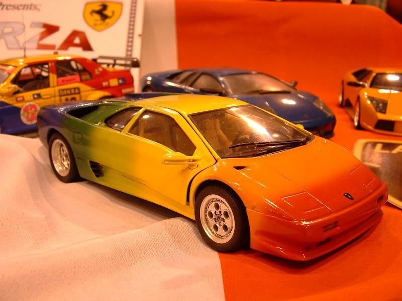 Beautiful cars and nice table! Isn't there a real life Lambo paint in a rainbow like that? I dont know just thought it looked familiar.
