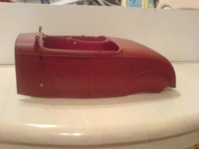 ![]() Just a quick update to show that my project is still under construction. The above photo shows the bobbed rear fender glued to the deuce body. |