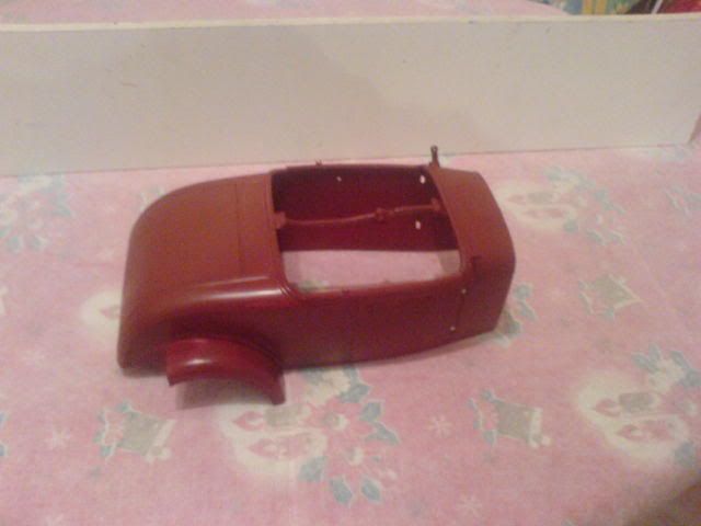 ![]() The first photo shows the front and rear crossmembers which I also boxed in. ![]() the second photo shows the bobbed rear fenders, which I have painted in Tamiya TS-33 Dull Red. |