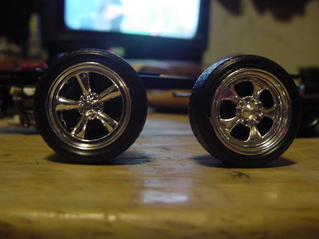Looks good so far, nice motor. I think either wheel you go with will look good. I have been looking at this kit for a while, can't wait to see how it looks finished.