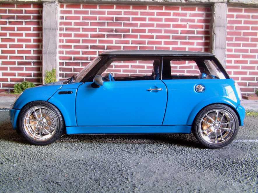 That Mini looks awesome! Very good looking, I like the silver on the mirrors and roof and the custom interior. And of course, those wheels! Great job.