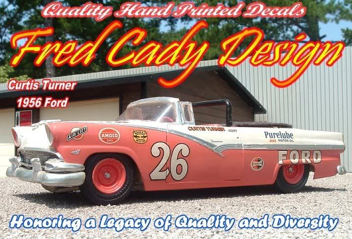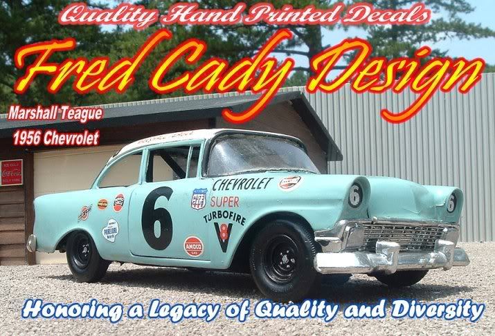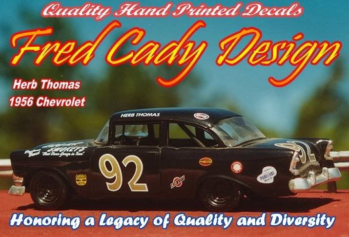 One of the other model boards is doing a "post your Fred Cady decorated model" this weekend in rememberance of his long and prolific career as one of the very first, if not the first, aftermarket dealers in auto decals. He did everything from Indy to Nascar and street stock to sprint cars. I particularly appreciated the handlettering he saved me from having to do on the vintage stock cars. Figured I would just post the link to all of them at one time. Please delete the other post with the few pics on it if you wish.