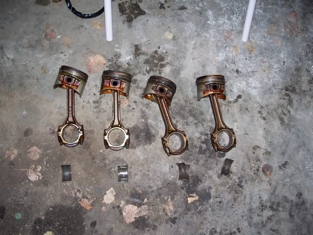 This is the car after I finally got the head gasket done. ![]() Here is working on the Talon after I spun a bearing. ![]() Here is the parts car getting the engine pulled to get rebuilt for the purple car. ![]() Moving the bottom end from the parts car. ![]() Bottom end getting pulled apart. ![]() Stock pistons/rods. ![]() The Eagle/Ross combo .