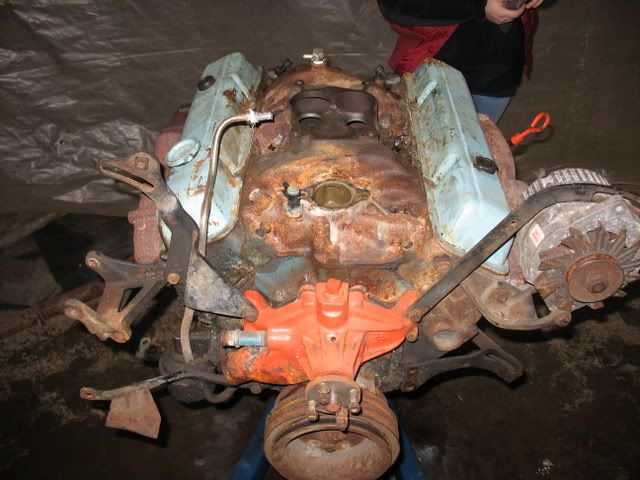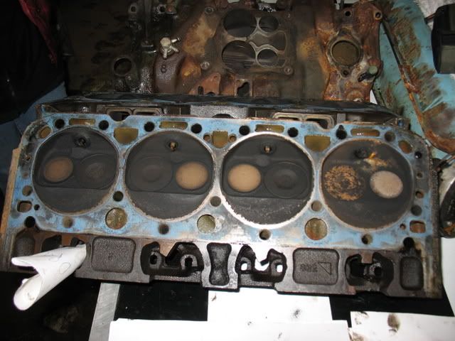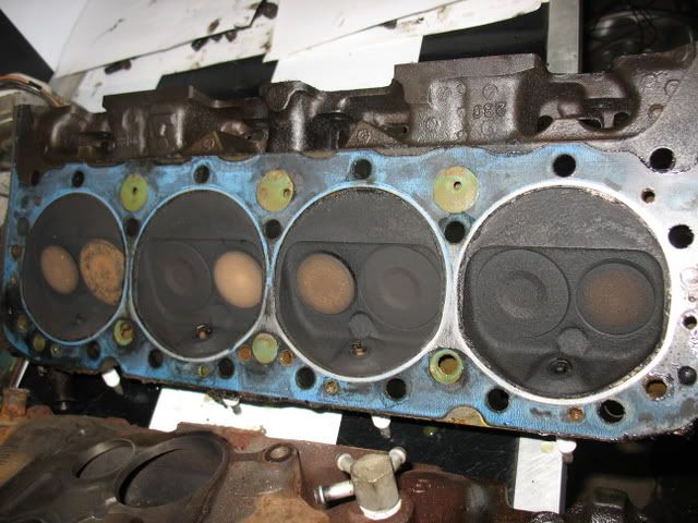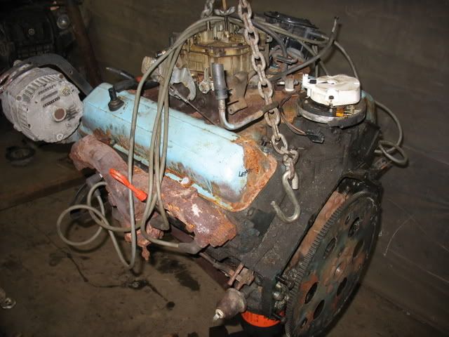 Here we have the 79' on the lift in the air ![]() And a random shot of the underbody, not too shabby. ![]() After a couple hours I got the motor out of the car along with throwing the transmission in the back of the shop with plans not to use it again... ![]() Then while the motor is out of the car I am going to break it down to clean everything and paint it so it looks good. I have to research what color the block was origionally then go from there. I cleared off this bench on the other side of the garage to use while i take the motor apart. Pretty neat if I must say so myself. ![]() So I started by taking the quadra jet out and I haven't decided wheather or not I am going to rebuild it, have someone rebuild it, or someone said a remanufactured one costs as much as having one rebuilt. Here is a picture of the Carb removed off the motor... I know its pretty bad. ![]() After that I pulled the intake off and got a look inside and im excited because it looks pretty clean... ![]() Then I got a look at the valve train... not bad.. all the rods move freely (Like you can move them with your fingers in a circle not up and down that would be bad) ![]() Then I have a picture of one of the heads they both pretty much look the same. ![]() ![]() Now with the heads off you can see down into the cylinders and they look pretty clean dont they?? ![]() ![]() Now what I plan to do with everything is clean it up really well. Then paint parts that are ment to have paint. Not going to mess with any motor work. Compression was good and everything looks to be in order. I mean the car drove fine and idled great so just a refresh here. Have to remember a college student rebuild here lol. The big thing with this project is that its going to be Changed/swapped from a automatic to a 4 speed manual. This is going to be a fun project to get into! Any comments suggestions are welcome I will be updating with progress a little bit every now and then. Thanks!