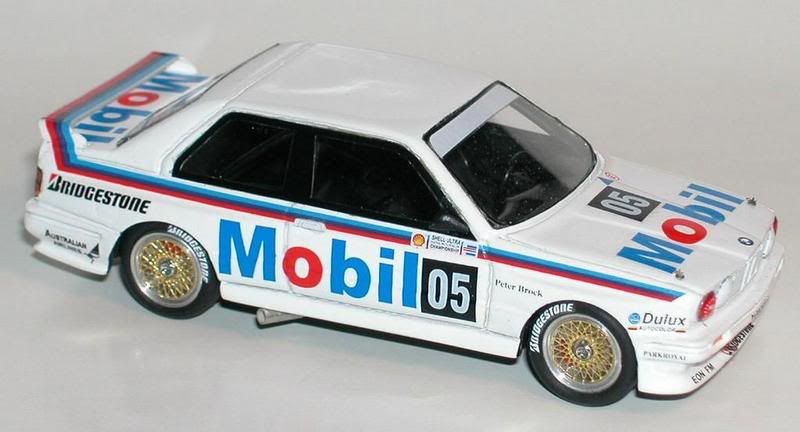 First up a Mitsubishi Lancer Evo 3 driven by Tommi Makinen and Seppo Harjanne in the '96 Rally Australia. They won the championship at this event. Kit by Provence Moulage. Just noticed I have lost part of the Michelen tyre decal on the rear. Grrr. ![]() Next up is a BMW M3 driven by Peter Brock in the Australian Touring Car Championship in 1988. Bought the kit from www.automodellistudio.com. Not sure of the brand of kit. |