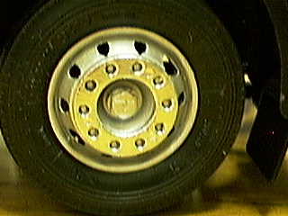 Box Art picture... Here is a wheel painted with Tamiya X-11 chrome silver which I think looks very much like a brushed aluminium truck wheel, the trim I covered with chocolate wrapper (I get loads of free chocolate as I have a... errm... lets say 'Lady friend' who is the manageress of my local Thorntons... I'm in the process of primering the cab sections but as I now have 3 days off work it'll be Monday night till I do anything else on the kit, so sorry you'll all just have to wait!