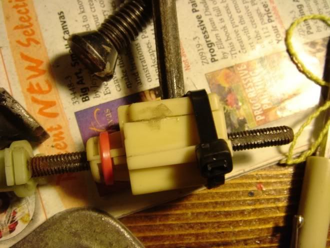 Well you cant buy these separately with out buying a whole new headlight housing. I took one of the adjusters apart and attempted to repair it ![]() After taking it apart and cleaning the rust and road grime off the threads. ![]() So I used epoxy to glue the white adjuster housing but it wouldnt hold. So I ended up using a zip tie's to hold the two halves together. The one center Zip tie is the only one that is holding it together. The one on the tip wouldnt fit through the headlamp mount bracket. A smaller wire might work though. ![]() This one I put together backwards ![]() Then I continued to break the adjuster mount bracket from the housing Thats what I get for working in the dark, and it was 15 deg Epoxy+duct tape held great Because the adjuster piece slides into a grove on the head light mount bracket it holds together, untill you pull the light housing out again.... So it works for now, but what will I do if it breaks again. Well I looked on Ebay and found a pair for $137 + shipping. Here they are below. I do have to use needle nosed pliers to adjust that jerry rigged adjuster. ![]() I stoped in and asked my local DMV if these were legal for street use and they could not find it any where that the lens had to be yello. I know in some states it has to be yello. Though It has an amber bulb in it anyway so it will flash yello colored. ![]() That is a good deal, and the adjusters look like they might be better and not crap out. What do you guys think clear or stock headlights ?