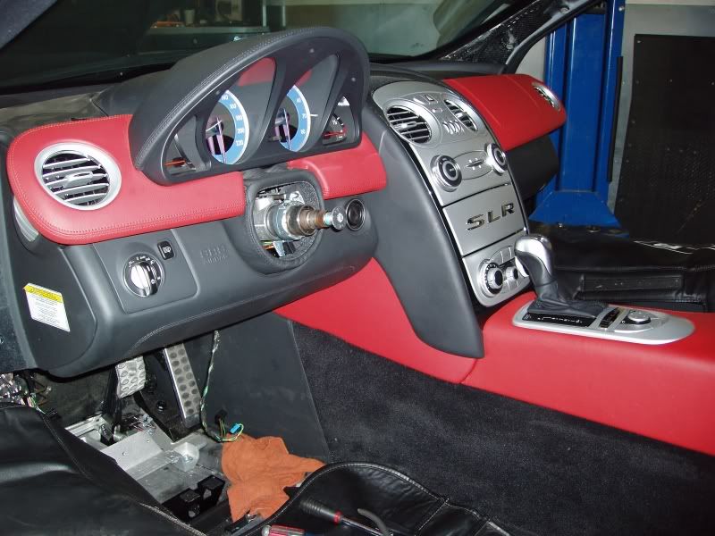 So about two weeks ago we had 4, yes 4, SLR’s come in at around the same time. One was an early ’05 model that had 900 miles on it. Whoever owns it never drives it, in fact it didn’t even have up to date registration on it. The car sat in a garage for pretty much the entire time so when I came in to the shop it had 14 recall/service campaigns. So that took a fair bit of time but campaigns are campaigns, I have most of them down to a science. Another came in with a “fuel malfunction” lamp indication on the instrument cluster…turned out to just be a simple A/C hose since it had almost no refrigerant in it. The fuel is cooled by the A/C system so when the fuel sensors saw the fuel getting too hot it throws up the malfunction light. The third came in for like 2 campaigns and a rattle from the engine compartment, nothing big, just a heat shield hitting an intercooler. Then there’s THIS car. Came in with a “fuel malfunction” light on like the other. I figured it was another A/C leak before I even looked at the car and ended up being right. The only difference is that as soon as I turned the A/C on a strong refrigerant/oil smell came shooting out of the A/C vents. My immediate reaction was “oh fuck!”. That smell coming through the vents can only mean one thing….evaporator. So I did the usual pressure checks and leak detection tests and came to the conclusion that it was the evaporator which requires removal of….well, you’ll see. I tell my foreman and he agrees with the diagnosis. So he gets on the horn to MBUSA and calls for a technical assistance rep to come out and verify it, a job this big needs the MB :Day 1: First off, remove the left side fender: ![]() That’ll give you room to remove the left muffler and heat shields: (exhaust already removed in this photo) ![]() I just thought the carbon fiber looked cool here: ![]() Now dig your hands into that tiny hole to remove the heater hoses to the heater core and then to the A/C expansion valve on the fire wall…yeah, it’ll hurt like hell: ![]() Good, now remove the steering wheel and center console assembly: ![]() Don’t forget the left seat, carpet, and trim: ![]() ![]() ![]() ![]() And now the right side: ![]() Spaghetti under the right kick panel: ![]() And who can forget to remove the entire trunk trim to gain access to the battery cables?: ![]() Day 2: Started the next morning by removing the entire dash assembly. ![]() ![]() It comes out complete with dash and heater housing together. It’s insanely heavy, takes at least three to remove it safely without damaging panels: ![]() ![]() Shot of the backside: ![]() Open shot of that birds nest we saw early in the right kick panel: ![]() Now remove the heater housing from the dash panel: ![]() Dash carcass: ![]() And this little bastard is what all the fuss is about. Such a small component and a small leak causes all this commotion: ![]() And a shot of the scene: ![]() After I took that last shot the MB rep came in to check out the operation just out of curiosity. This is only the third on in the country ever done, yay, I feel so lucky. Anyways, I ended today by installing the new evaporator and even got the dashboard put back in the car. Did a vacuum check to make sure no more leaks are present. The A/C system is now holding refrigerant and the car is ready to be put back together. I’ll update you with more pictures after work tomorrow. Hope you enjoyed. Mods, this is posted here so everybody can see it. Move it to technical or SLR forums if you feel necessary.