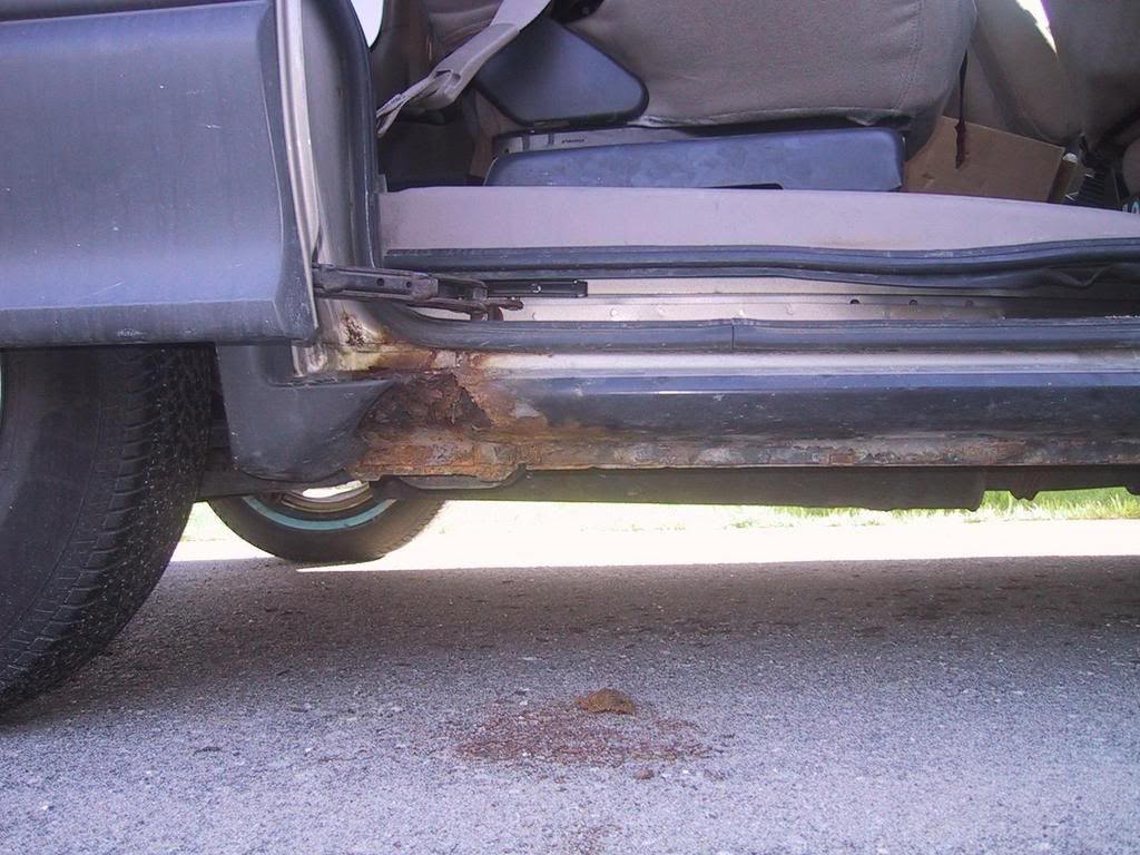 I'll show you the problem. Need some suggestions. I think this will need to be addressed but I'm not sure where to start. ![]() ![]() There is a long story to how they got that way. I found out after it started to rust that a while back I had my van in to get repaired after a car accident (minor one... but enough to need the sliding door and lower mold replaced) While there they improperly lifted the van.. I guess they had the lift arms in the wrong place and it crunched this area in. I didn't notice it until it was bad. Now I'm stuck with this.. on both sides. Any suggestions. Thanks |
