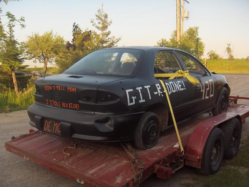 "If it runs and moves, DERBY THE DAMN THING!" - 2000 Ford F-150 4.2L V6 Reg. Cab Long Box 223k. Nothing special, just a beater work truck. - 1995 Ford F-250 7.3L PSD 2WD 291k. K&N Air Intake, 4" Turbo-Back to 5" Staks through the box. Other then that a good truck for pulling around my toys! www.SmashCarRacing.com 1997 Pontiac Sunfire ![]()