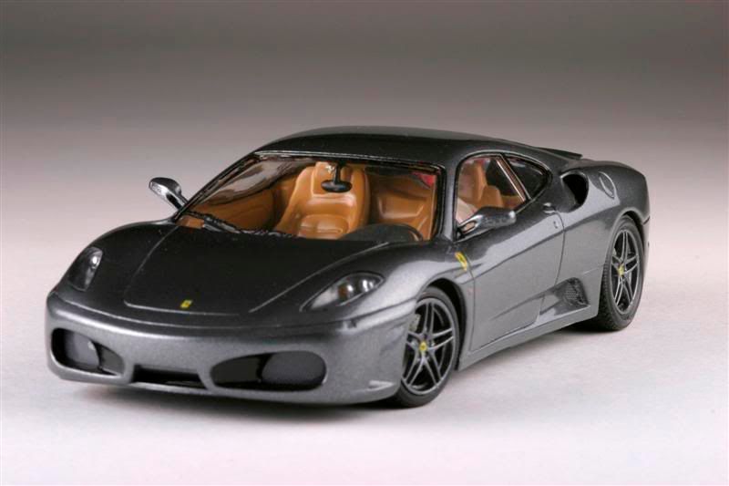 Here's my F430. Lowered the ride height (it was sitting like an SUV)! The front tires are too small, as everyone knows, but lowering it really helped. Paint is Duplicolor Gunmetal with their clear coat. Rims were painted to match. Interior is a home accents beige I picked up from home depot. Straight box stock.