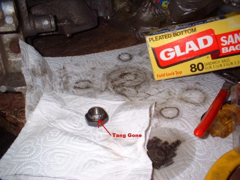 ![]() I could not find any place that had a 26 mm socket so I went to my regular SAE sockets. I found that a 1 1/16" socket was pretty close so I used it with the electric impact gun. Seemed to work ok: ![]() Of course with the tang knocked out, I'm going to replace the nut anyway. But even so, the nut would still be usable if the tang were still there.