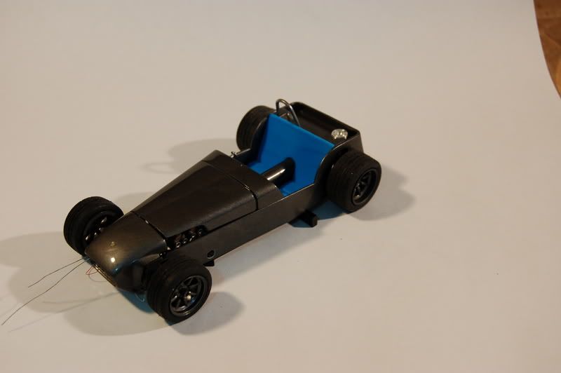 WIP Thread is here: http://www.automotiveforums.com/vbul...ight=slant+six ----- Man was this a fun build. Challenging but fun. Once I figured out how to cut half of the damn chassis and body out to fit the engine, the rest went rather smoothly! This is the same customer that I built the 427 SOHC Galaxie and road racing Falcon for in the past, so he let me have a little creative control of the project. He just said he wanted a Slant Six Super 7 painted gunmetal. We ended up with Dupli-color Metallic Charcoal with clearcoat, and I added a blower to the Slant Six to make it a little more substantial. What's funny is that the engine sits WAY further back than the original Cosworth four, so the weight distribution is likely better, and the center of gravity isn't ALL that much higher since the motor's lying on it's side! The engine is a Ross Gibson resin kit, which btw is AWESOME and comes with everything you could want. I had to make my own bracket for the alternator to re-route the belt for the blower. Engine is Dodge Hemi Red, the blower is a 4-71 from an AMT '32 Ford kit. The distributor is wired, but since it's near the bottom of the engine on the passenger side, there's no way to get a really good shot of it. Carb and air cleaner are from my parts box, and I fabricated the rear-mounted plenum behind the blower out of styrene block. Master cylinder is also from my parts box. Wheels are from a Fujimi Mine's Lancer Evo VII, grey Dupli-color primer with clearcoat on top. The suspension is box stock though I did add rear disc brakes from my parts box, and ran some brake hoses up front. Front coilovers were painted silver then detailed with a red Sharpie. The interior also required a lot of work--the original bench seat isn't at all modern or attractive, so I took one of the sets of seats from the Mine's Evo VII kit, sanded them down a bit on both sides to narrow them, and they just barely fit. The trans tunnel required a lot of reworking, and a shifter from my parts box. The dash was converted to left-hand-drive and a gauge cluster was added from the parts box too. Harnesses are masking tape painted red with Simpson decals and photo-etch belt buckles. The rollcage took a lot of time and effort using styrene rod and candle flame to bend it (see the WIP), but turned out pretty good--I googled "Caterham racing" to find reference pics, so it's fairly close to competition Sevens. It was painted primer and clearcoat to match the wheels. Taillights are also from my parts box. These pics were taken a little while before I did final touch-up. The car has now gone to the customer, so these pics show it with a few things still to fix. The body still required minor touchup paint (around the rollcage mount points, and the mini-windshield)... I also detailed the wheel centers, and drilled out the end of the side exhaust. ![]() ![]()