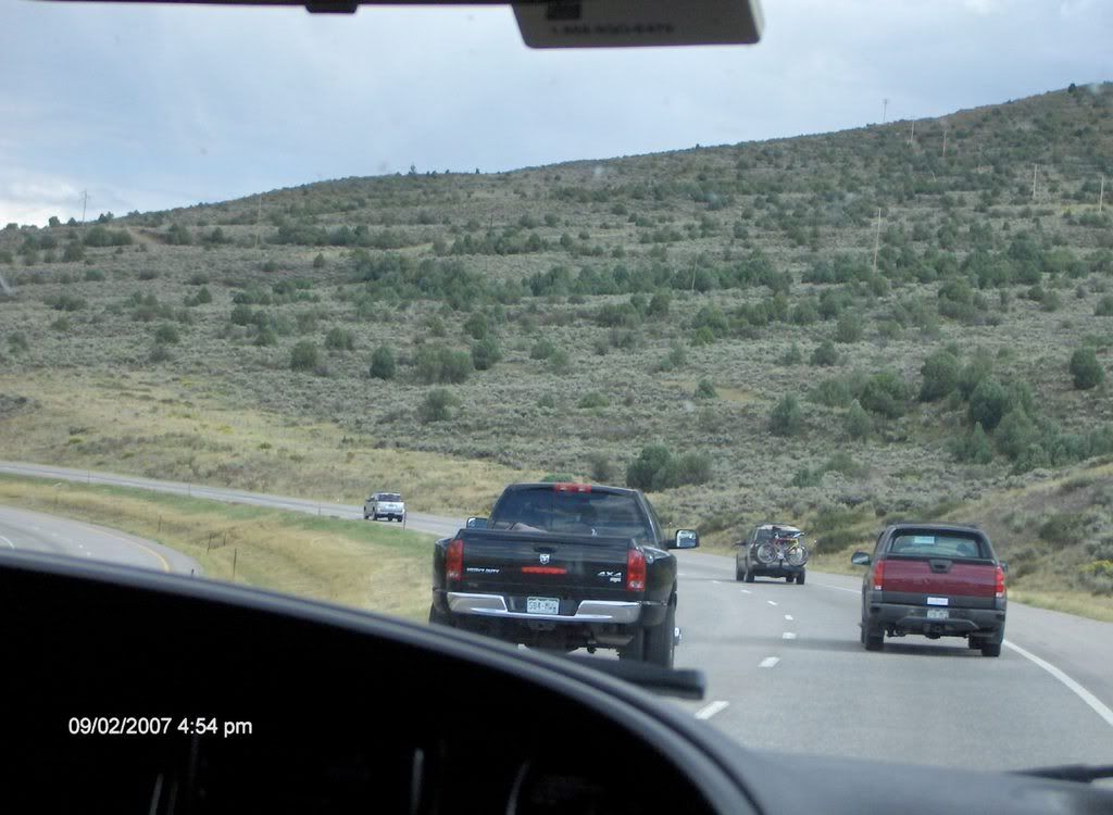![]() Just some nice Aspen trees ![]() This is the stretch of highway from McCoy to Bond, Colorado - Colorado river flows high through here ![]() ![]() ![]() This is the replacement bridge for the ole Colorado State bridge ![]() ![]() Couldn't resist to take this shot of our next dream rig for camping/hauling; the one we should've bought - black one-ton Dodge dually, instead of our 3/4 ton; at least our engines are of the same cummins beast. Thought it was a sweet looking truck - he was flying too.