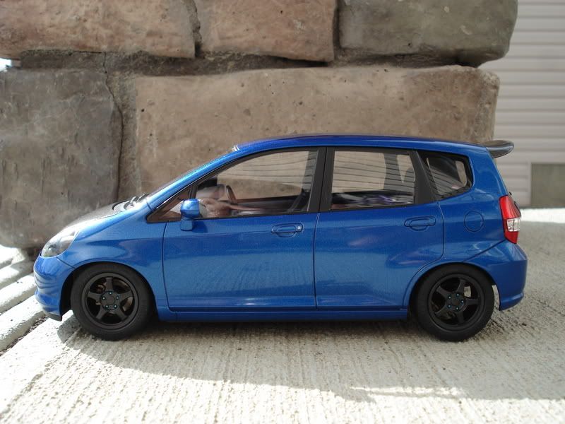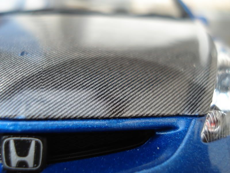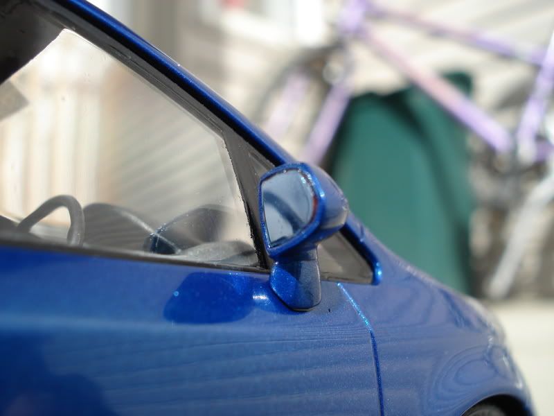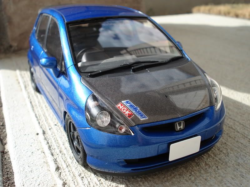 Paint is Honda B520P vivid blue pearl, duplicolor clear can. Lowered suspension ~2mm N1 style muffler from Aoshima JUN Prelude Fujimi Spoon SW388 rims Scratchbuilt rear Spoon duckbill spoiler SMS carbon fiber decals on duckbill and hood, going for the unified Spoon look. Added blue tint on the mirrors, another attempt to go for the Spoon look. Converted manual gearstick Didn't like how Tamiya made all the parts squeeze tight, after the paint, clear, and floor wax on the windows I realized all the parts needed squeezing into place, which caused some scratches and gaps. I had problems putting the taillights into place, if I force it into their holes I would scratch the paint and probably chip it. I also didn't know the rear windows were designed to be completely flush with the rear gate. After I glued everything together and clip the chassis into the body I ended up with a big gap between the taillights and the rear gate. It looked like the interior walls were pushing against the body too much causing the body to bulge out of shape. In this project I found out that automotive paint will eat right through Tamiya primer as well. The body had sunken mold lines at the corners of the bumpers. I used Tamiya primer to fill those lines and it looked fine before the paint went on. Right now all mold lines are very visible and I can barely feel them sink in with my fingernails. ![]() ![]() ![]() ![]() ![]() ![]() ![]() ![]() ![]() ![]() ![]() ![]() ![]() My 2007 completed projects: ![]() ![]() ![]() Thanks for looking! |