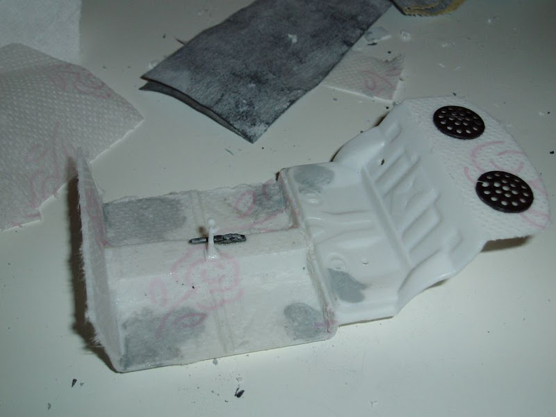 I put some "carpet" for the interior... (its toilet paper )put a shift and a handbrake, I'm not sure about these speakers.. |