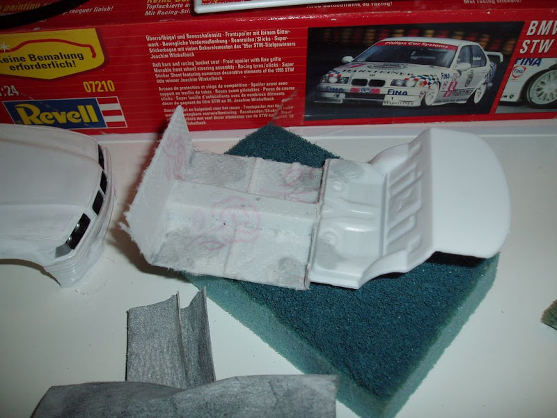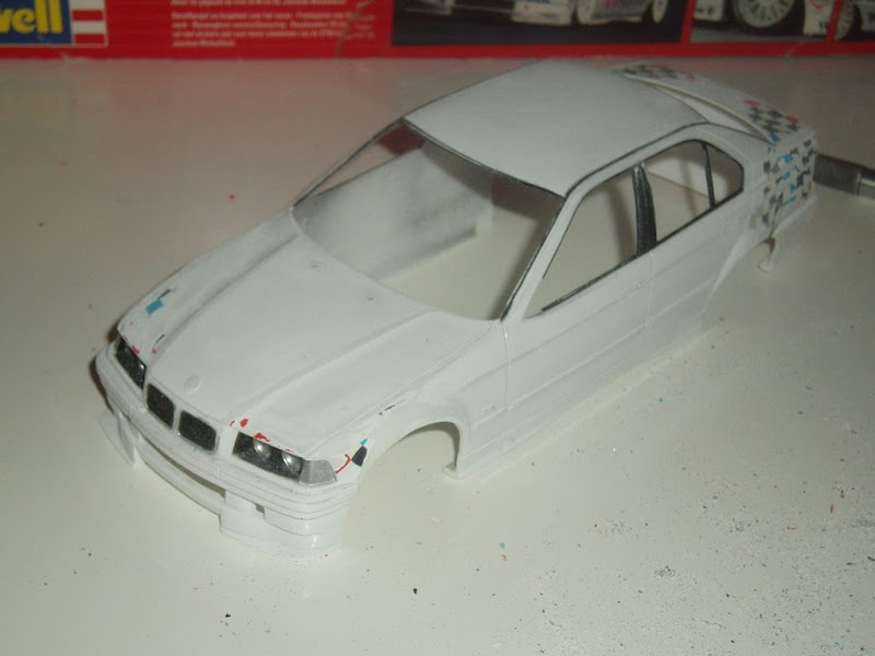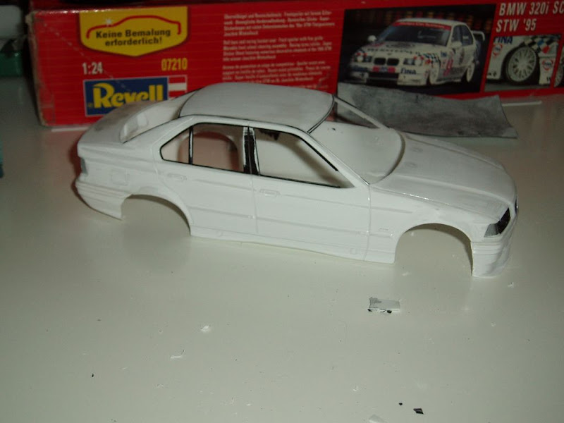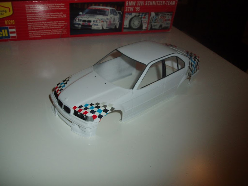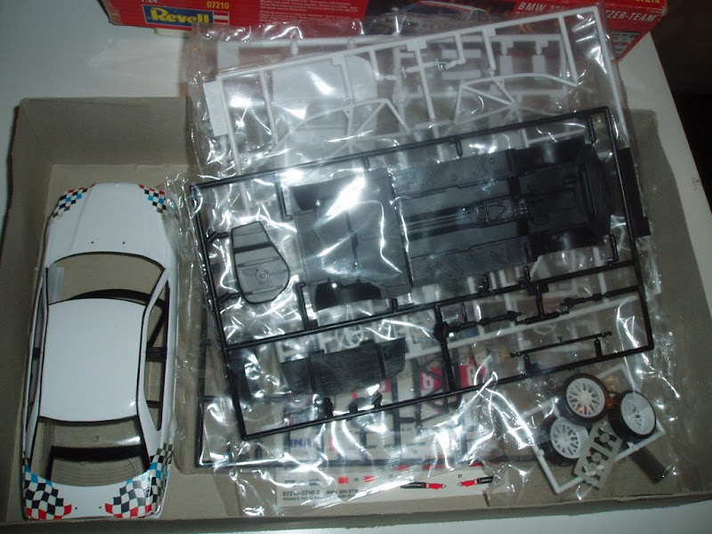 This is the Revell BMW 320i schnitzer team STW '95 but again I'm going for a street - drift version please be patient because I dont have much free time, plus I try to make more models at the same time feel free to check my other posts... I believe this is an old kit (never seen it before) I accidently found it at a toy shop (!) as you can see its box is in a very bad condition (while the inside is very good) these are the stuff in the box.. and here they are out of the box ...