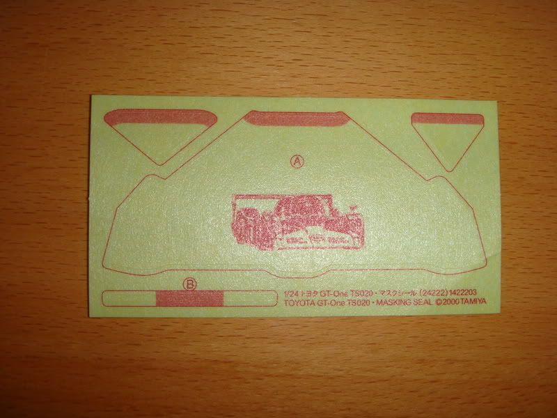 I've done this model 3 times so, I think I know how to paint it...... Connect the left seal with the large seal (A) And the right seal with the small strip seal (B). This will make the car an accurate the the real one having Triangular white area's. Theres a great example of the correctly built up one here: http://www.werkshomepage.de/Mix/ToyotaGToneNr3.jpg When it comes to masking it, I Primed the whole thing, masked off the white parts, painted it TS-49, removed the mask and masked off the red parts and painted it Pure white. Good luck, hope I was of some help.
