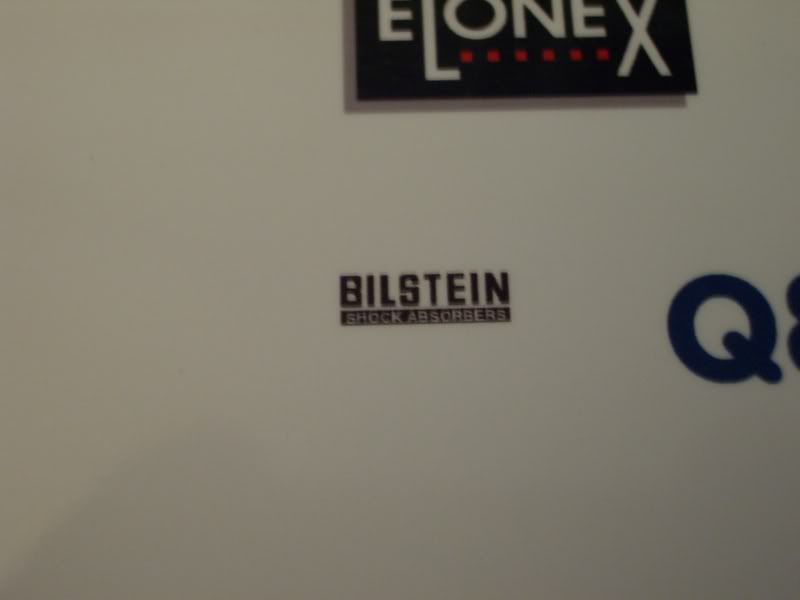 You can also get white paper as well,so if you are placing the decal on a darker background you can use the white paper.The only problem is you would either have to be very good with the scissors when you cut the decals out or white will show around the edge of the design,or you can print a border of your background colour around your design so that whilst cutting it out you need not be so precise. I've not made any battery or oil filter labels etc yet,but I have made a very small Bilstein Shock Absorber logo and the writing on it is tiny,but it shows up perfectly and is very neat and readable (example shown below) so I think it would be possible to make labels for batteries and oil filters and the like. The printers resolution is 9600 X 2400 DPI. The Bilstein logo.(it's about 8-10mm wide) Looks a bit blurred but thats just me with the camera it is perfect in reality.