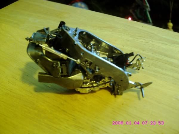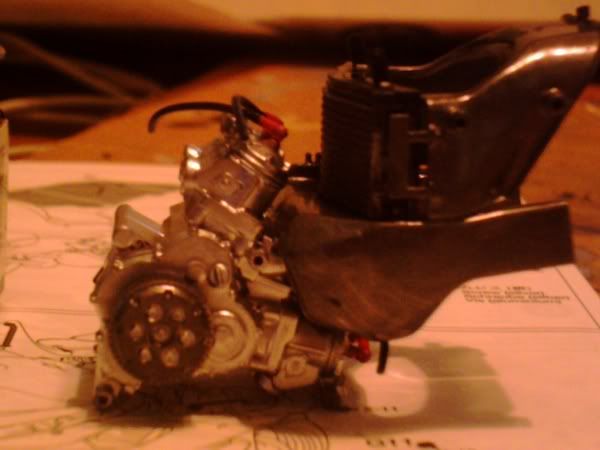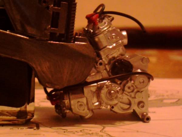 Got the frame and the engine Attached. Spark plug wiring for 2 cilinders hooked up now too!