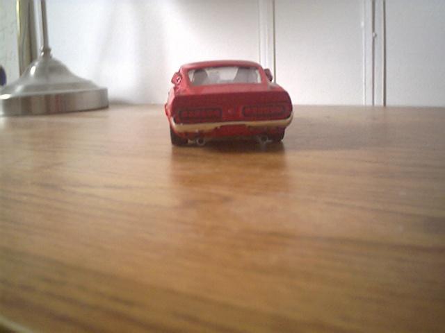 This was a model I redone.It only took 2 day to get the old paint off.The rims are off another Stang.the hood scoop was an extra on my 32 Ford roadster.I added the front pulleys and belt from another Stang.I make the NOS bottle out of playdoh.The car has also been lowered.