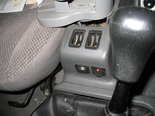 ![]() I got some radio shack switches for my bumper fogs and hellas and mounted them in the front of the center console. I think they look pretty good there (have 3 switches now for my new set of hellas).