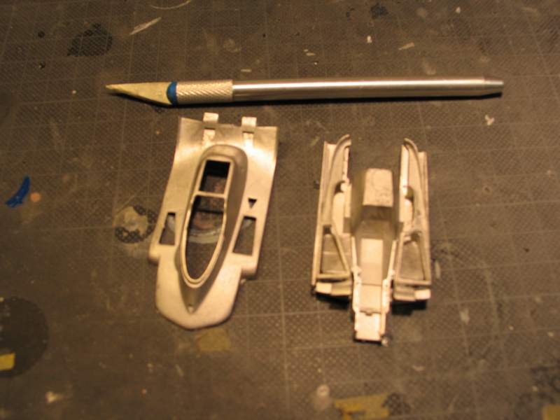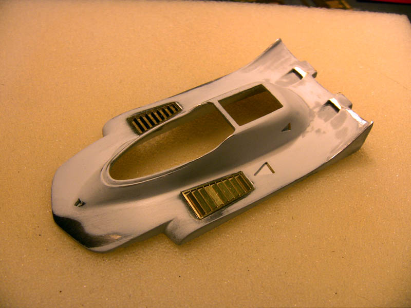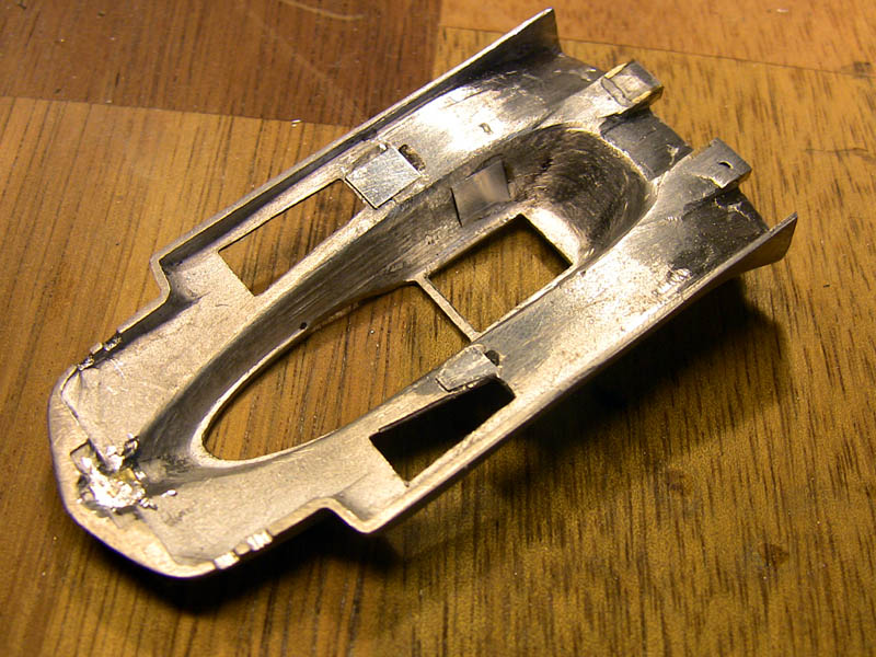 Really not bad, BUT room for improvements :-) ...if I go full detail there is something to change -The openings for the brake coolings are solids but I want them hollow, just like the real thing -All the vents must be opened. Only one is open (triangles) all others will be cut out later The two cooling ducts are cut out allready. I was really scared that I will ruin the kit The most scary part is nearly finished, the new ducts are in. ....don't ask how many times the parts broke off and I also solderdd some nice holes into the body..scary stuff Here you see the new opened colling openings, now there are five. Metal added from behind. alot of filling has to be done The skirt between the cooling ducts was cut away also and has to be redone from scratch. After a little primer the whole thing doesn't look to bad. The PE meshes are allready bend and test fitted...a lot of modification to the openings where necessary to make them fit. Then will be painted seperately and attached as the very last step to make painting and polishing the body not to hard. more to come daniel -germany- |