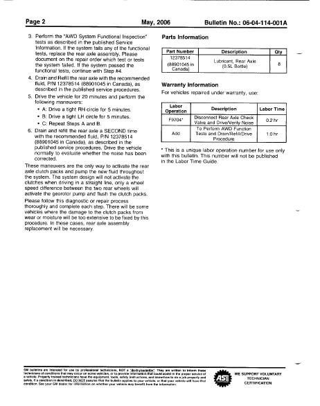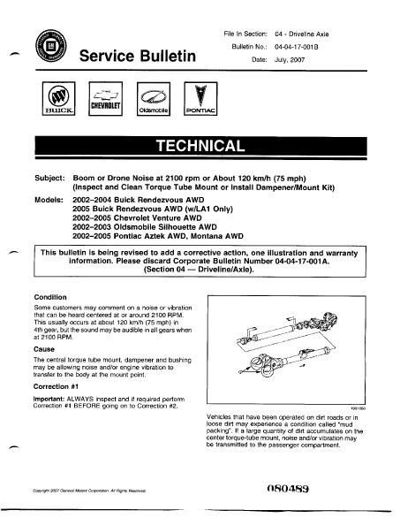 I have had the same problem on my '02 with 115,000 miles. It started after I had to have a rear tire replaced under warranty. The other rear tire was worn enough to cause a rotational difference between the tires. I was able to lessent the noise by rotating the tires, keeping the newer tire on the front.It is ridiculous that GM expects all tires to be the same all the time. You aren't replacing all 4 tires for a sidewall cut on one of them at 20,000 miles. I have the GM bulletins as pdf files. PM me if you need a copy of one.![]() ![]() GM also has this bulletin on driveshaft noise. The service bulletin kit is about $500. ![]() ![]()