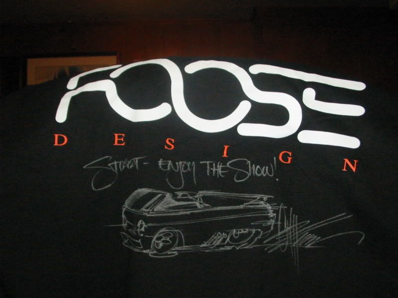 I just got home an hour ago from meeting Chip Foose...he was in Toronto this weekend at Speedorama. After waiting in line for 4 hours I had him sign a shirt for me.. oh yeah..and within 2 mins he drew a little something on it for me... I told him I was building a 61 Ford Econoline and he said "I am not really sure i know what they look like, so I will just draw from memory".... and he ended up with this in less than 2 mins... WOW..thats pretty amazing...hats off to the man!!