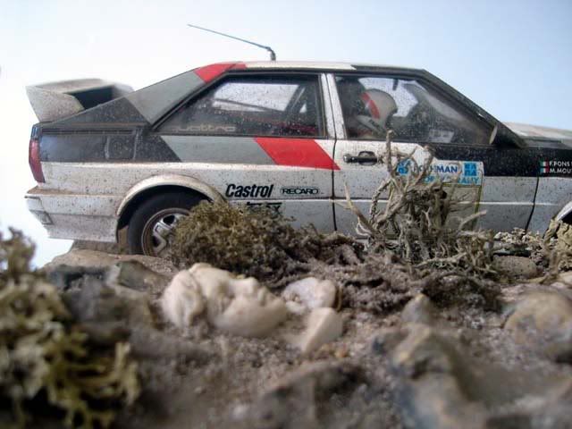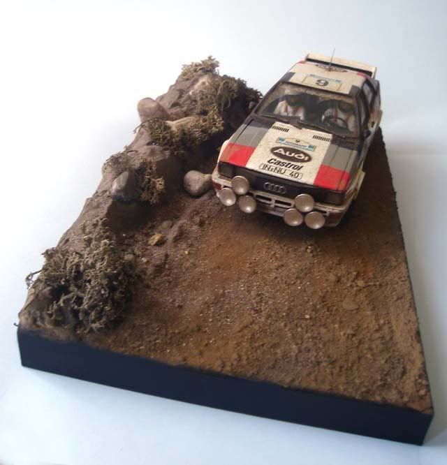 Your dio looks great, as does the subtle weathering on the car. I really like how you weathered the engine. Looks very realistic. And it's a nice touch to have the driver and co-driver look into the direction the car is going. Impressive work (as with all the other models your showing here). |