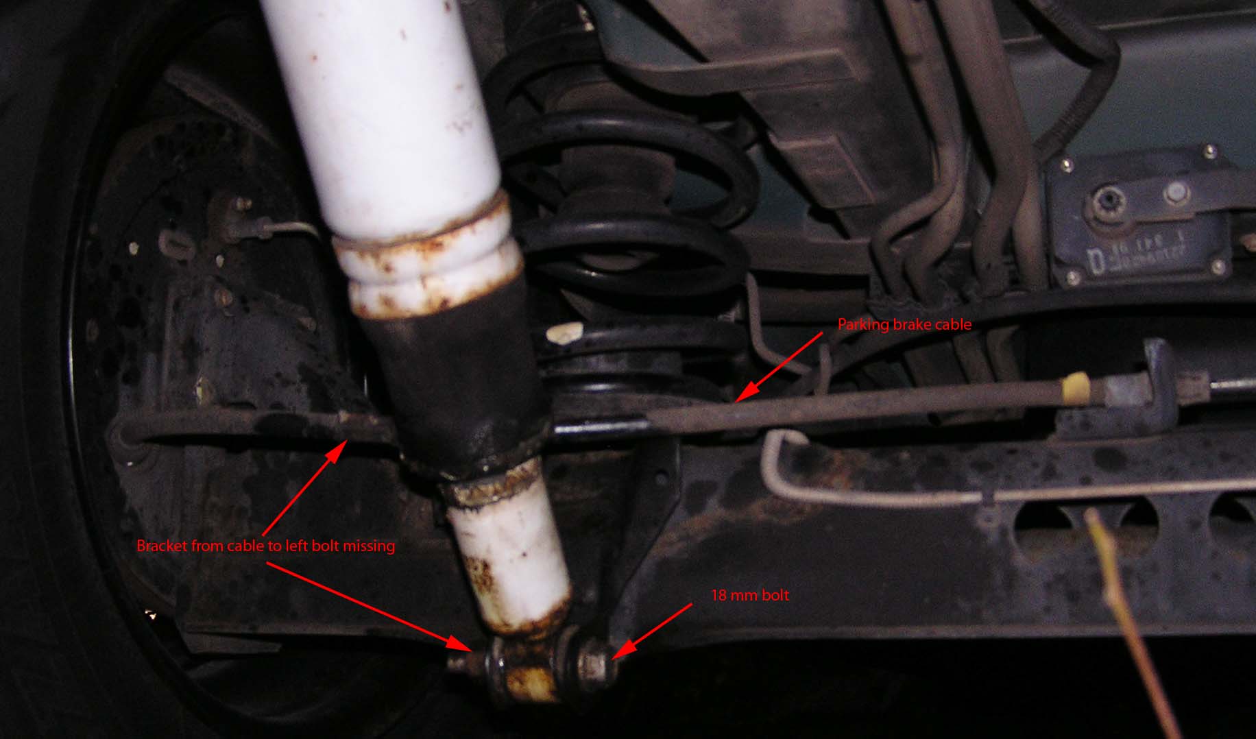 Here the bracket is shown in the Haynes manual. ![]() Here is my rear strut. ![]() Notice on the left, no bracket. Anyone know what this part would be or an online catalog with pictures. Thanks. I went to my local Chevy dealer and they were able to provide the image: ![]() Part#14 looks about the right place and name, Parking brake cable bracket. It doesn't quite look the same as the picture and there are left and right versions. I didn't notice the place on the cable for the right bracket. Last edited by db234; 10-29-2008 at 10:33 PM. |