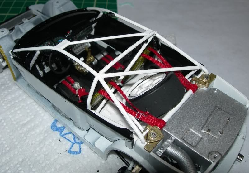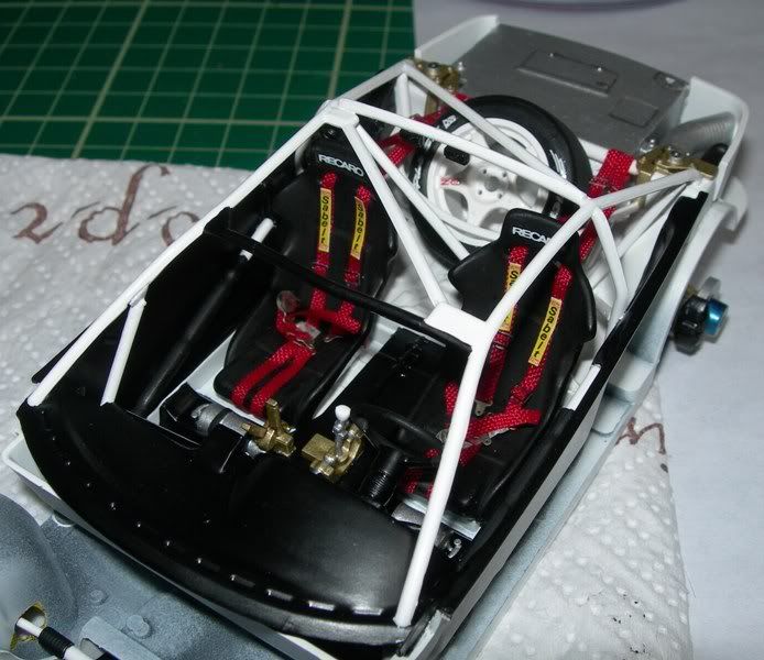 Nice job on one of my favorite rally cars.The interior looks very good and I particularly like your straps.Shame about those decals, but not your fault.I know what you mean when you say they wrinkle and crack.They are very poor,I had the exact same problems with them when I built this kit.I searched for aftermarket decals but could never get any.