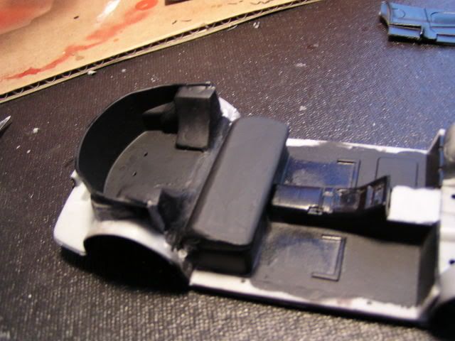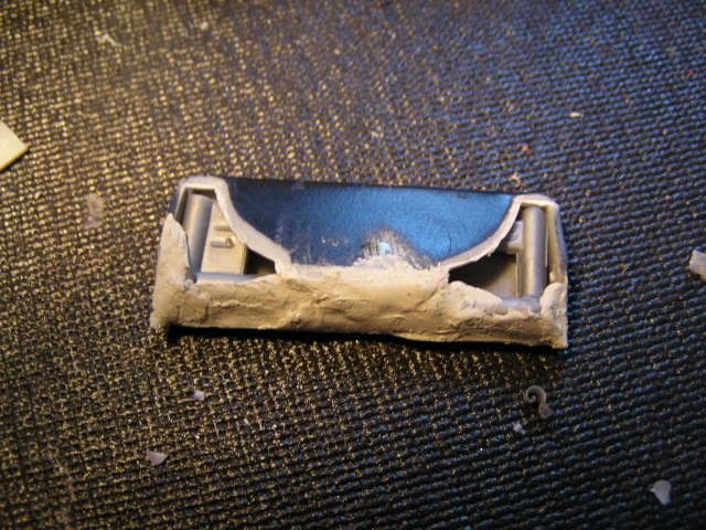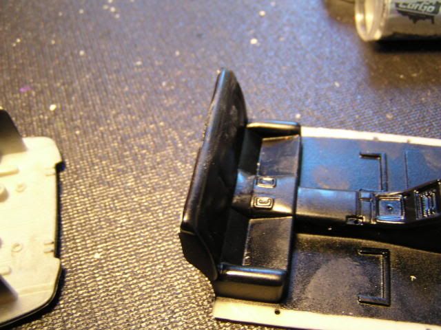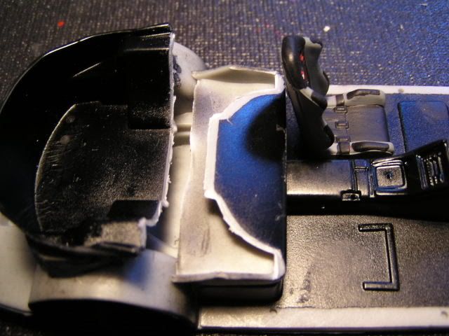 (Directed towards AMT) If your going to make a model of a movie car, get the details right. When I was looking over the kit I noticed that it only has one NOS bottle, and it just sits in the trunk/boot right next too a fire extinguisher. Now I know I am taking this way to seriously (geek moment approaching), but in the movie Brian reached over his should and cranks open 2 bottles of naws that are both facing forward. I don't remember him walking to the trunk, pushing a fire extinguisher out of the way and opening the nos. So I decided it would be more fun the cut the rear seat into a folded down position, like I imagine it was in the movie. First I had to fix the int. in place with some two-part epoxy putty. ![]() Then I cut the seat apart from the trunk space. ![]() ![]() Next I cut the seat-back from the lower cushion. ![]() Test fit. ![]() Filled it with chopped up tree, and began the putty up. ![]() Next I used part of the Supra wing I scrapped to fill the void. ![]() More scrap plastic to cover the triangle openings on the strut covers. ![]() Final putting prior to sanding. ![]() Painted and ready for naws bottles Mr Arizona.